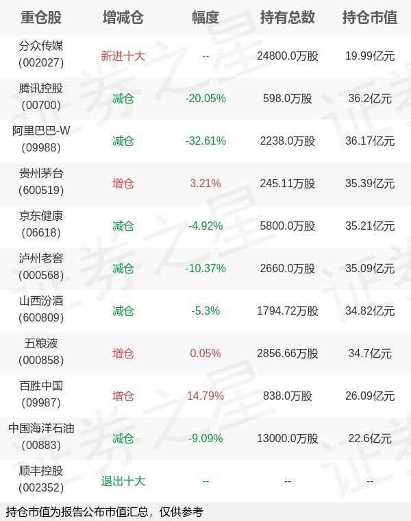 本站消息正规股票配资开户,10月28日易方达基金旗下张坤管理的易方达蓝筹精选混合型基金公布三季报,近1年净值增长率10.13%。与上一季度相比,该基金前十大重仓股新增分众传媒;其中腾讯控股持仓占比9.94%,为该基金第一大重仓股;顺丰控股等退出前十大重仓股;详细数据如下: