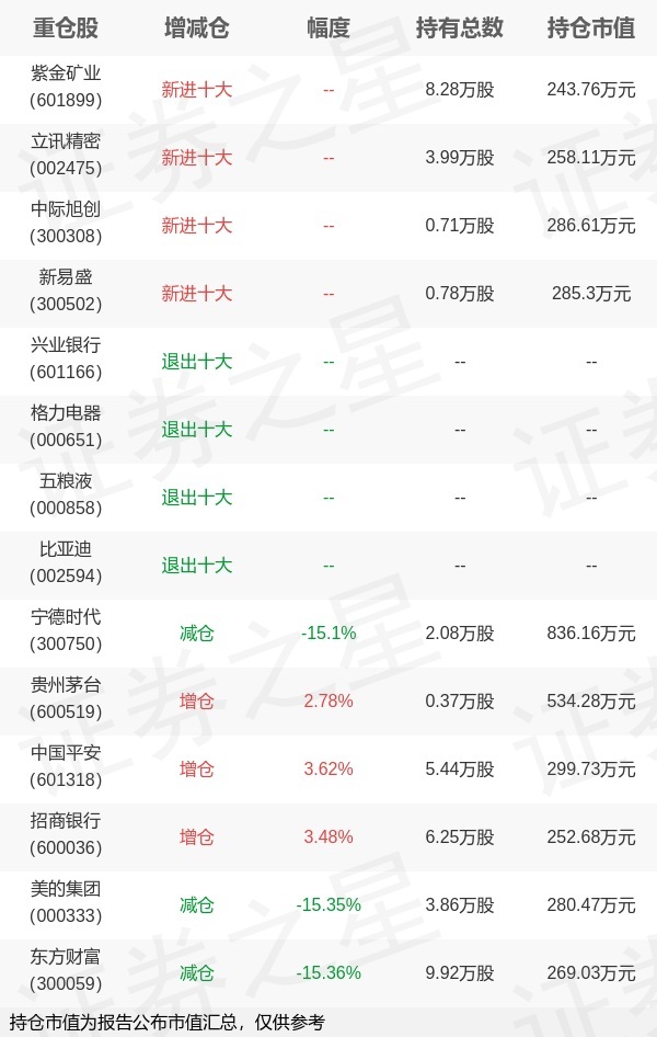 本站消息,10月28日易方达基金旗下余海燕 庞亚平管理的易方达沪深300交易型开放式指数发起式基金联接基金公布三季报,近1年净值增长率21.17%。与上一季度相比,该基金前十大重仓股新增紫金矿业,立讯精密,中际旭创杭州配资公司一览表,新易盛;其中宁德时代持仓占比0.04%,为该基金第一大重仓股;兴业银行,格力电器,五粮液,比亚迪等退出前十大重仓股;详细数据如下: